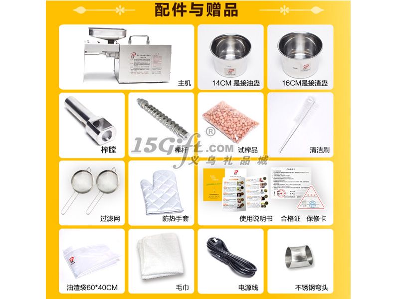 2、剛壓榨完油料榨膛榨桿處于高溫,請帶上防燙手套拆卸,或者靜止一段時