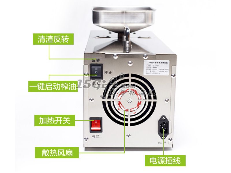11、火麻仁:由于火麻仁又小又硬,機器要預(yù)熱15分鐘以上,前期少量放入預(yù)榨兩三分鐘,待榨膛完全升溫后,再把火麻仁放進料斗直接壓榨。最好前期榨了其他原料后接著榨火麻仁,這樣榨膛有足夠的溫度保證火麻仁能順利完成壓榨。