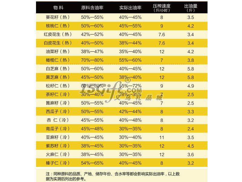 常見油料壓榨方法: