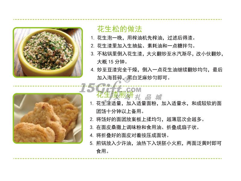 1、花生:花生壓榨之前先熱處理。根據(jù)花生干濕程度,烤箱溫度一般調(diào)到180到200攝氏度,把花生平鋪烘烤10到15分鐘,夏天時間可適當(dāng)短一點,或者放在微波爐中高火加熱3到5分鐘。每次烘烤不要超過500g,花生平鋪,加熱中間拿出翻動一下,以使受熱均勻。一般花生開裂,表面有油光就可以了,然后趁熱壓榨,注意花生也不可烘烤過干,否則影響出油效果。烘烤好的花生一定要趁熱壓榨。花生出渣完全是卷筒狀的說明花生烘烤程度不夠,一般不規(guī)則卷片狀的出渣、顏色帶褐色基本上就正常。顧客可以前期少量多次試榨以便掌握自家花生的壓榨技巧。